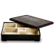 Этот черно-красный бенто-бокс, выполненный из лакированного меламина, можно встретить во многих японских ресторанах. Традиционные японские бенто-боксы используются для сервировки риса, суши, маринованных овощей, рыбы, темпуры — каждый вид закуски находится в своем отсеке, так что вы имеете возможность насладиться вкусом каждого продукта по отдельности. Бенто может использоваться не только в японской кухне, хотя основная идея такой сортировки — компактное размещение разных продуктов без смешивания одного с другим — остается неизменной. Например, вы можете одновременно подать салат, кусочки жареной куриной грудки, рис басмати и фрукты — и при этом не испортить вкус курицы салатной заправкой. Бенто-бокс — отличный способ компактно и красиво подать сразу несколько блюд.